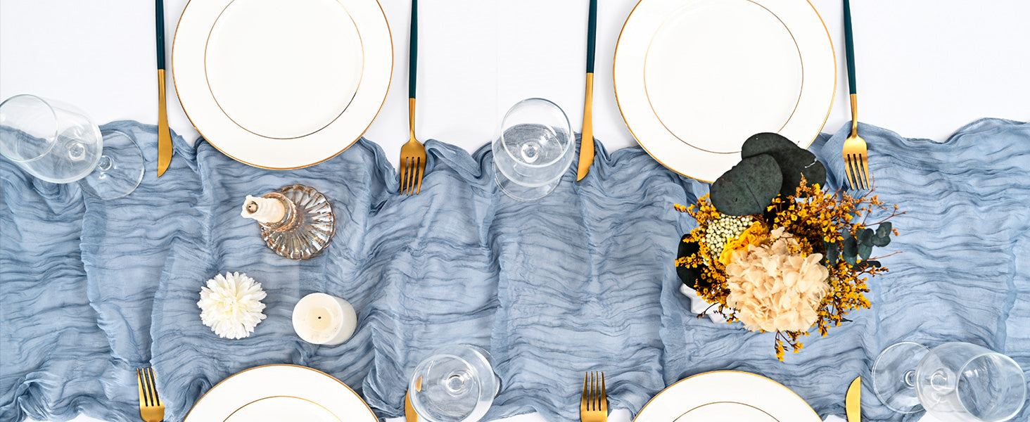 12 Pack Dusty Blue Cheesecloth Table Runner 10Ft, Gauze Table Runners 21.5 x 120 inch,Semi Sheer Cheese Cloth Fabric Runner Bulk for Wedding,Party,Baby Shower,Bridal Shower -